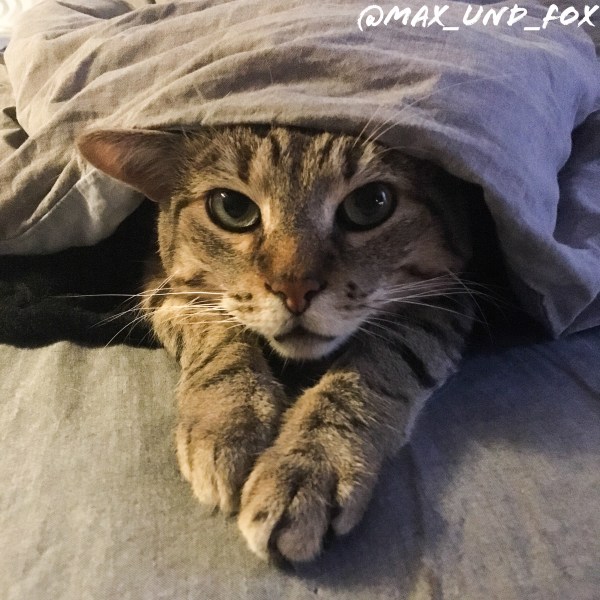 Hier ein süßes Bild von mir unter einer wärmenden Decke.