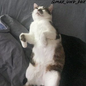also Mimi tendiert da auch eher zu Max, sie liegt auch gerne in der Sonne, nur wenn es ihr auf Balkonien zu warm wird, dann weicht sie aus auf kühle Fliesen oder so wie Fox in schattige Ecken.