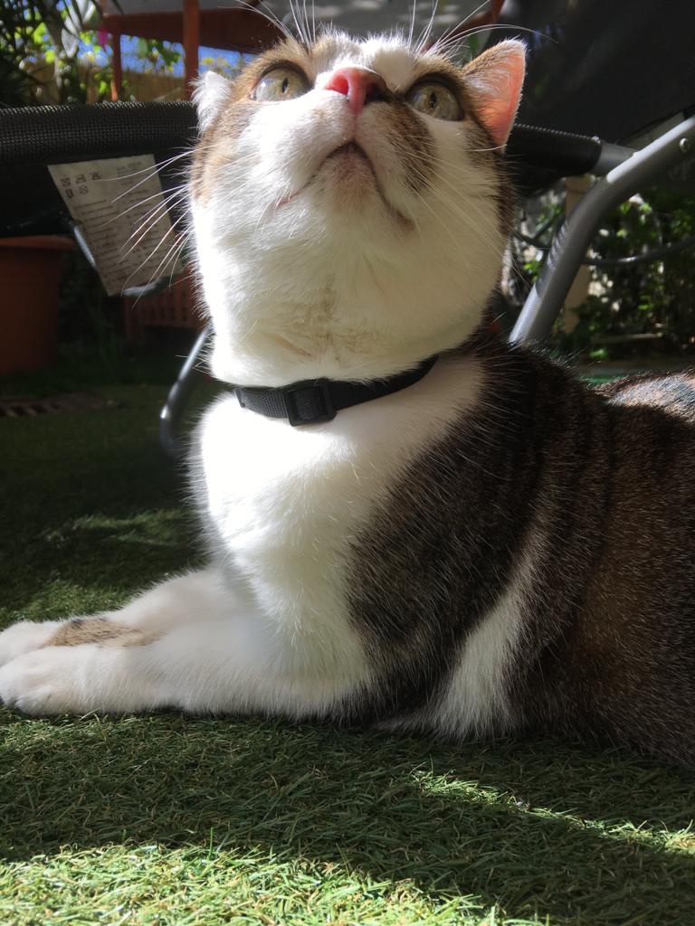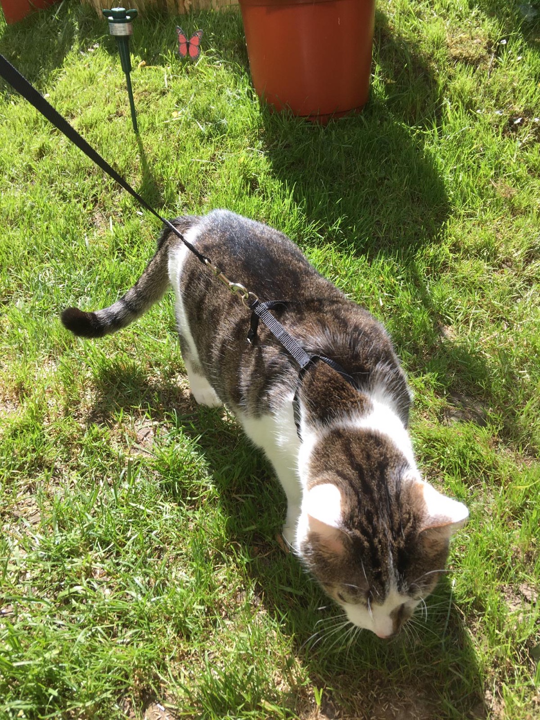 Ich hingegen hab mich schnell daran gewöhnt. Es ist wirklich sehr schön geworden, was unsere Hauselfen da gebaut haben! Mit dem Geschirr hab ich auch kein Problem. Ich weiß, dass es zu meiner Sicherheit ist. Wenn ich das Geschirr anbekomme, weiß ich, dass ich raus darf! Ich will die Terrasse unbedingt noch weiter erkunden.